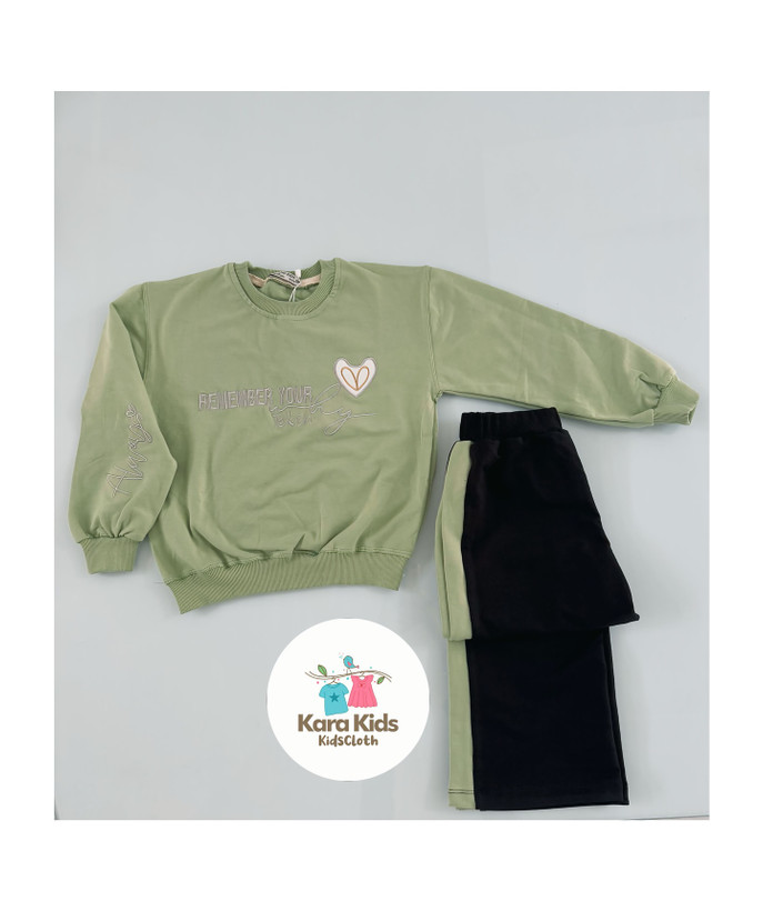 بلوز و شلوار دخترانه مدل گلدوزی ضربان قلب جنس لباس : نخ پنبه نرم و لطیف رنگ بندی : کالباسی / سبز