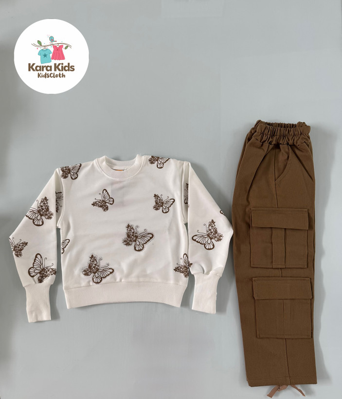 بلوز و شلوار کارگو مدل پروانه دخترانه